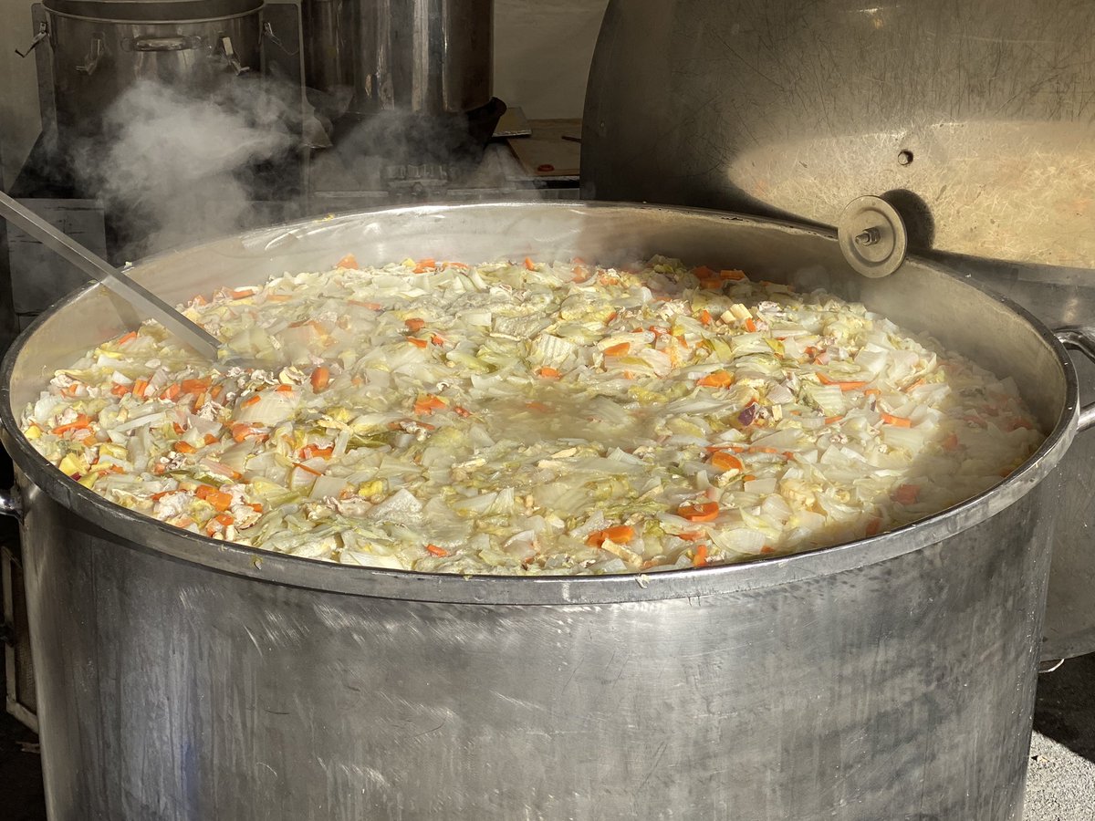 亀有公園で販売される、亀有千人鍋、グツグツ煮えてます。 1杯100円、味は2つです! お楽しみに。