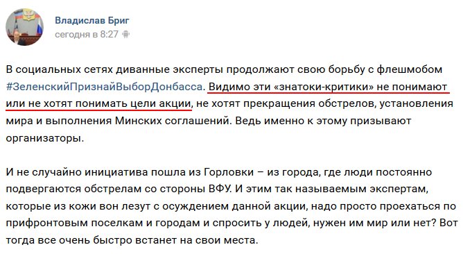 #Бриг: вы ничего не понимете, дурачьё. #ЗеленскийПризнайВыборДонбасса - это такой хитрый план #хпп https://vk.com/wall324629639_41535 …pic.twitter.com/niuUCkMZS7