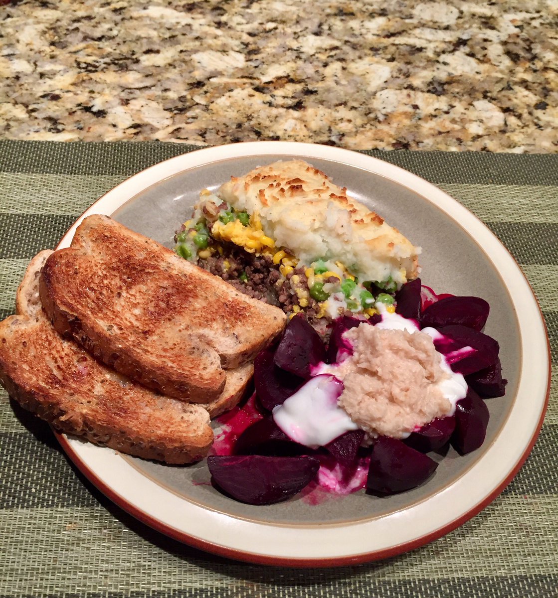 Supper tonight on this cold snowy night is a venison shepherds pie along with beets topped with sour cream & horseradishpic.twitter.com/OOm1oizyCG