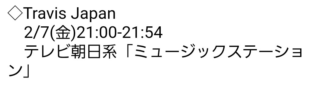 Mステタグ悩み中なのでみんながどうするか Mステトラジャは仮で「# MステTravisJapan」とか「# トラジャMステ」とかMステとトラジャの名前組み合わせる感じのイメージ (今回はTravisJapanの名前売りたいので長いタグは微妙派の私です)