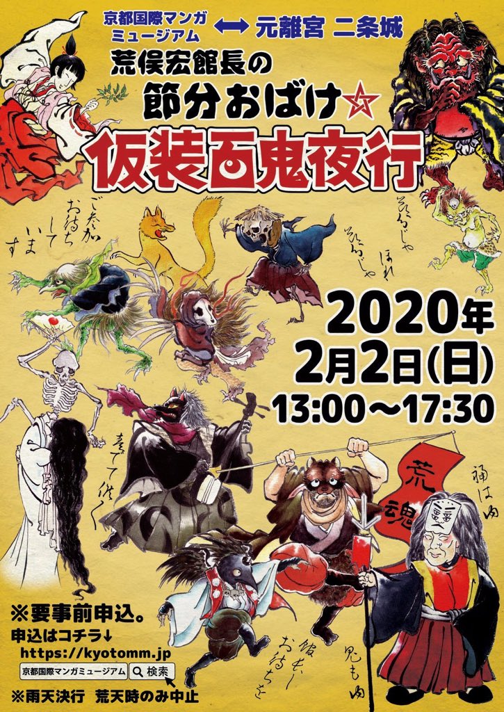 #節分おばけ仮装百鬼夜行 の仮装パレードに参加される方は申し込みは 出来てますか!? 参加するけどまだの方は申し込みは 今日までなので、ぜひ下のURLから↓ https://www.kyotomm.jp/event/eve_hyakkiyagyo2020/ … おどろからも1つ告知を。 我々の妖怪から 『日本三大妖怪』といわれている妖怪達が向かいます。 以上。pic.twitter.com/KzXaZCR7xM