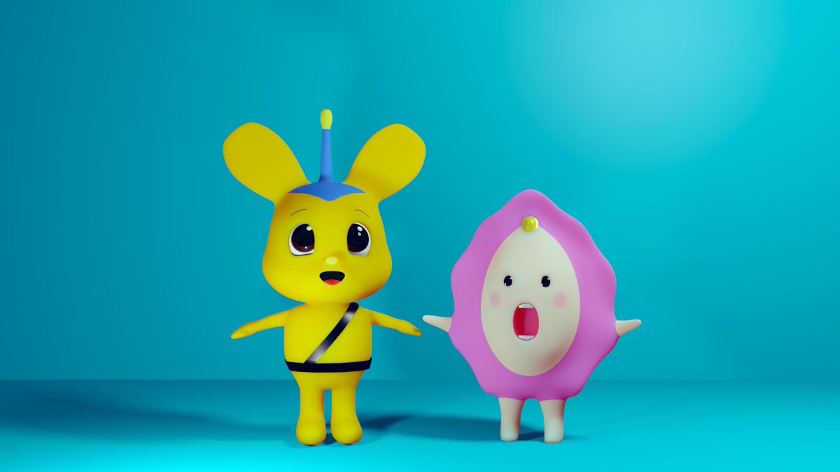まんこちゃんとピーポくんのレンダリング。マテリアルのパーツ別色分けやノードもチュートリアル見ないでできるようになってきました