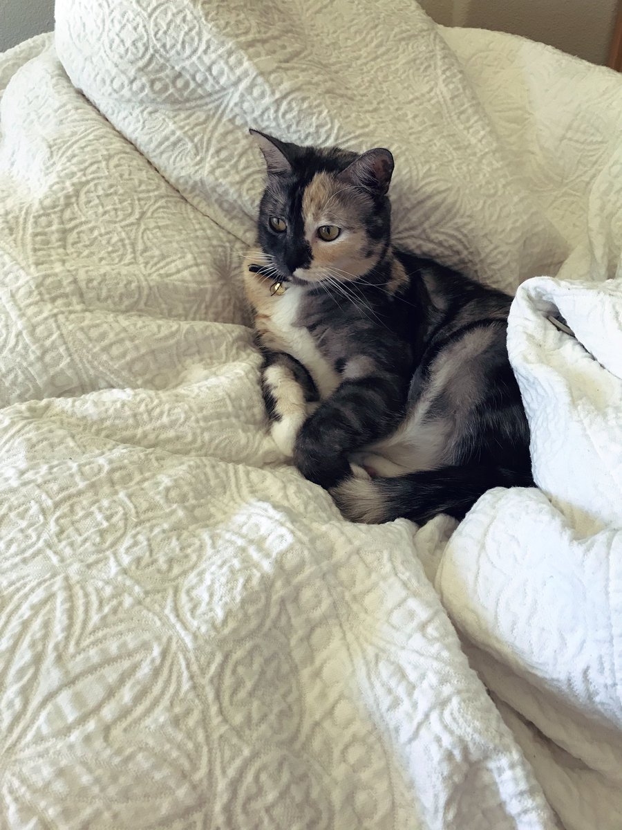 I’m not totally sure but she definitely has the coolest coat I’ve ever seen in a cat. I adopted her from a rescue. She was a street kitten with her mom in Hollywood, so glamorous!