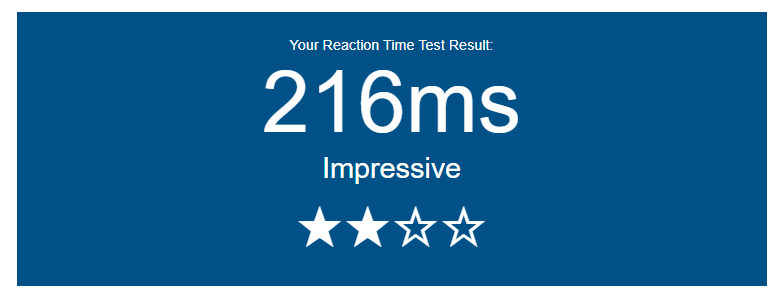 My average reaction time is 144ms! https://www.arealme.com/reaction-time-test/en/8103553 … #ReactionTimeTest boomer reflexes