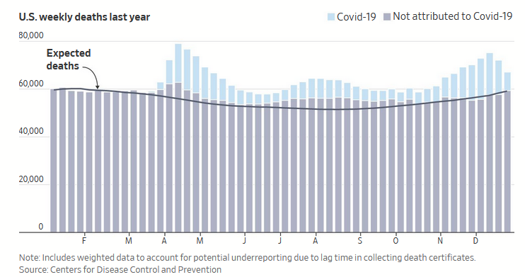 CDC data shows 475,000 US excess deaths last year through early December, of which only 281,000 were known to be from Covid. The others may be undiagnosed cases or indirectly linked by neglect of other health needs. https://www.wsj.com/articles/the-covid-19-death-toll-is-even-worse-than-it-looks-11610636840 …pic.twitter.com/2hNH4nxNLP