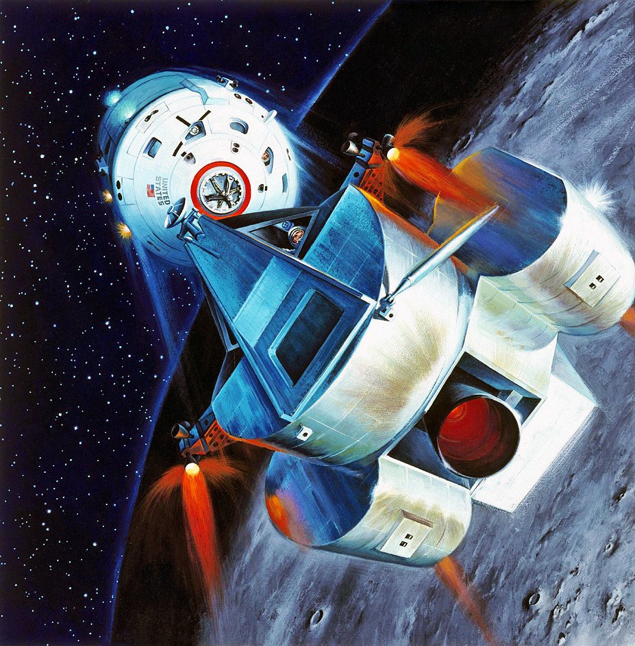 Davis Meltzer, “Lunar Excursion Module Prepares to Dock with its Mothership,” 1960s http://70sscifiart.tumblr.com/post/179486549679/davis-meltzer-lunar-excursion-module-prepares-to …pic.twitter.com/ffaESaBmkT