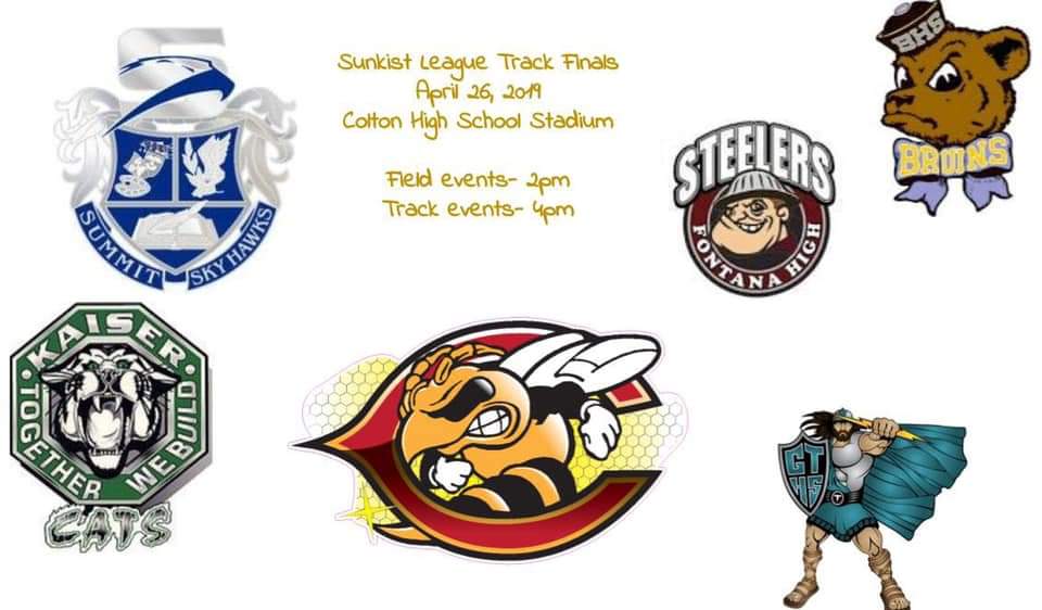 Sunkist league track finals. To all of the CJUSD High School's in the Sunkist Final may you do your best it's not all about winning but challenging yourself to be the best. Good Luck to you all.pic.twitter.com/9nXfaE9M8L – en Colton High School