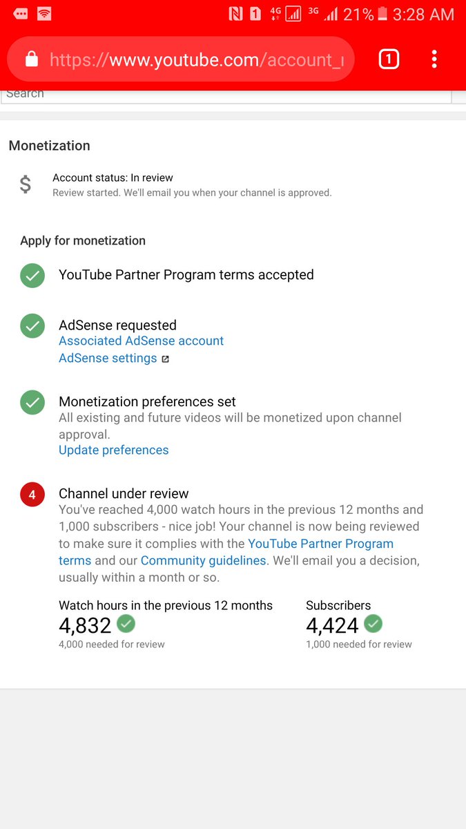 @TeamYouTube My Channel 33 days in review my channel 1k with 4k hour watch time done but my monetization not open please Open my channel link 🔗 https://www.youtube.com/channel/UC-pfp0Pt3wK297YOuoHcFWQ … please open my channel monetization thanks YT teampic.twitter.com/OXnimPD7EF