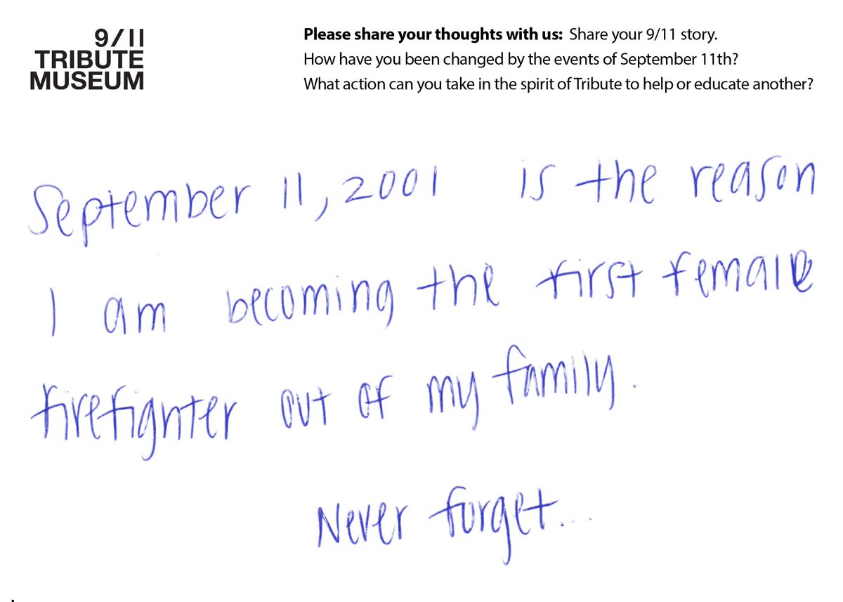 "[9/11] is the reason I am becoming the first female firefighter out of my family. Never forget…" #VisitorCard #WednesdayWisdom #WednesdayMotivationpic.twitter.com/I5yltzdn2g
