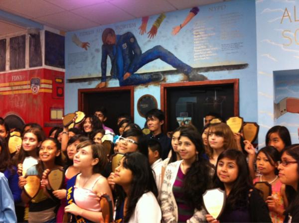 The dedicated and inspiring students of IS 259 who worked on the 9/11 Memorial Mural.pic.twitter.com/StTQCvFy
