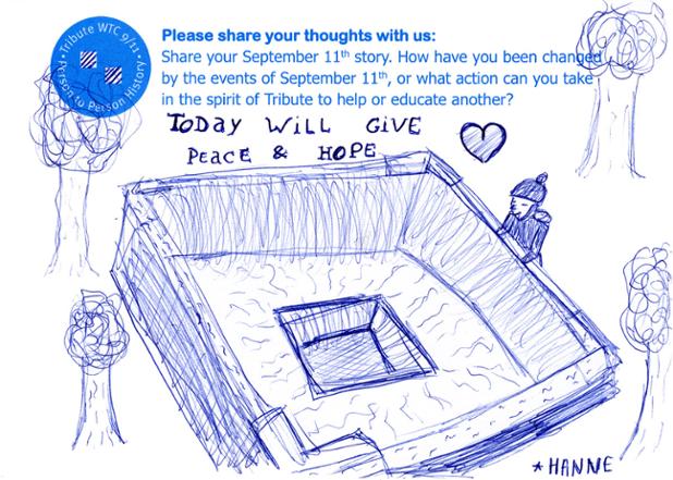 "Today will give Peace & Hope" - Hanne, a #911TributeCenter visitor. #VisitorCardpic.twitter.com/NTl5wsIfss