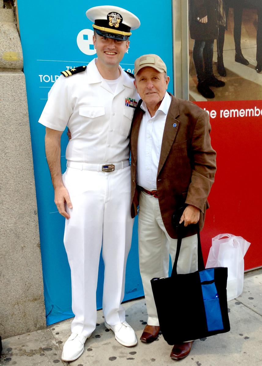 Our President Lee Ielpi gets his own #SelfieWithASailor with Lt. Matthew Stroup. Thanks Sailor! #FleetWeekNYC #USNavypic.twitter.com/rMqf244T2V