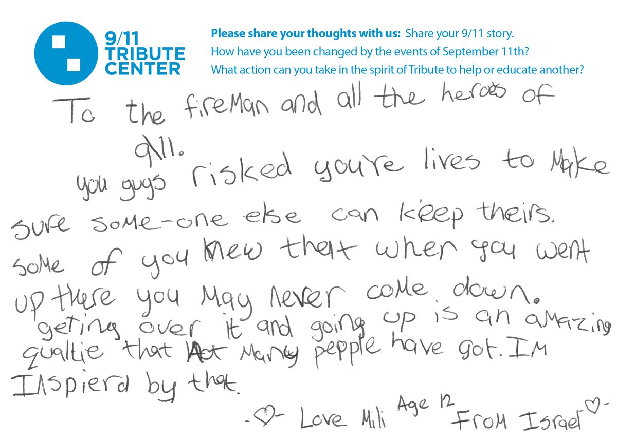 12 y.o. Mili shared her feelings on the #inspirational bravery of the first responders.