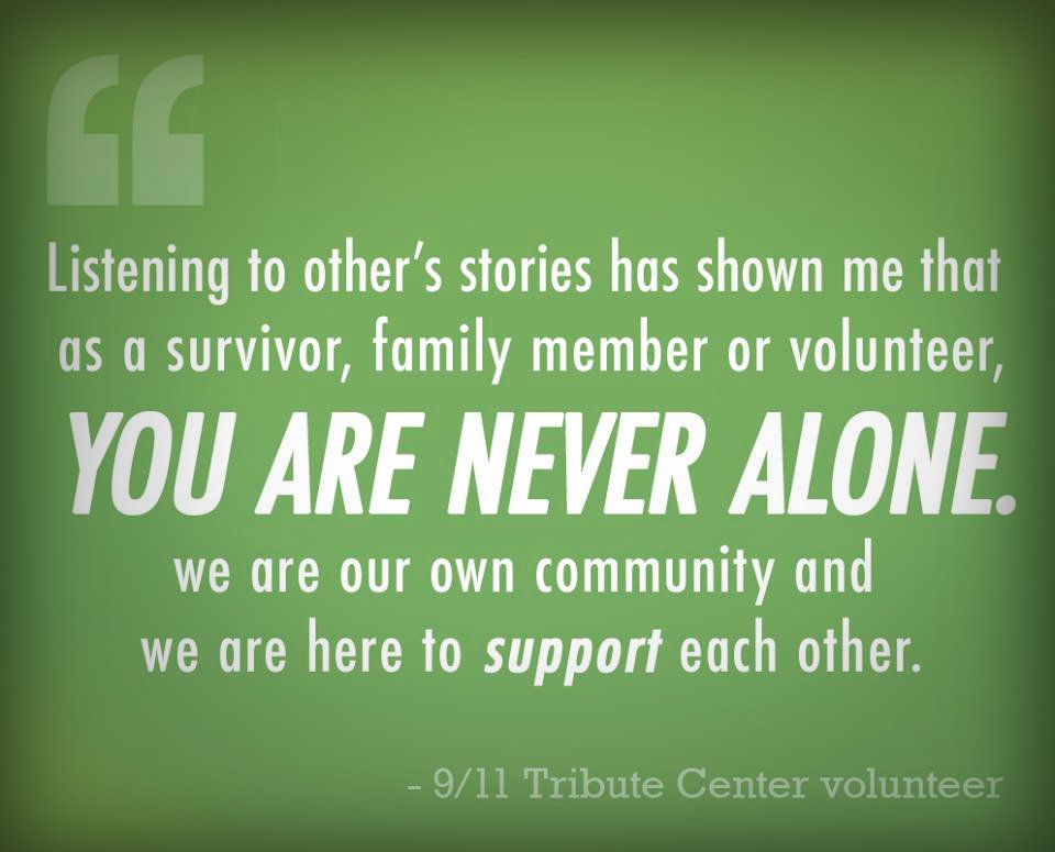 "As a [9/11] survivor, family member or volunteer, you are never alone." #MondayMotivationpic.twitter.com/xYijtWvAcb