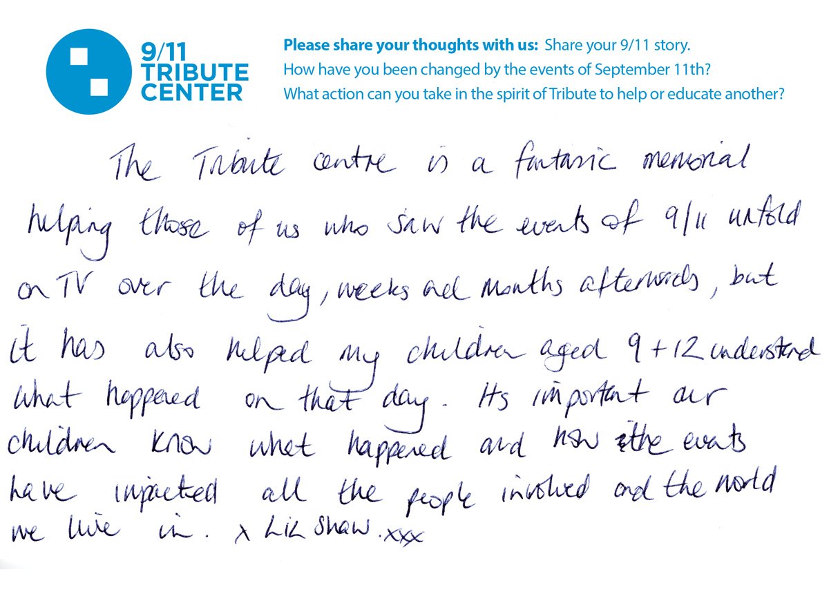 We’re so pleased when parents feel our galleries help their children understand the impact of 9/11. #VisitorCardpic.twitter.com/TxK55zGdam
