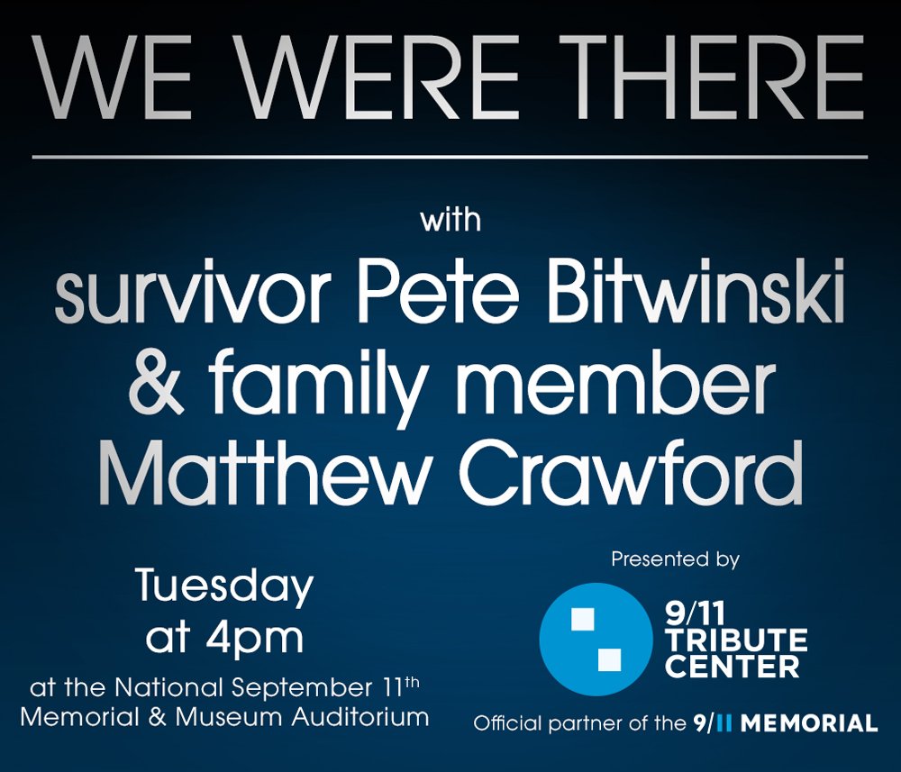 Hear the stories of 9/11 family member Matthew and survivor Peter as @TributeWTC presents #WeWereThere, at @Sept11Memorial Auditorium.pic.twitter.com/UFSOfzdDwW