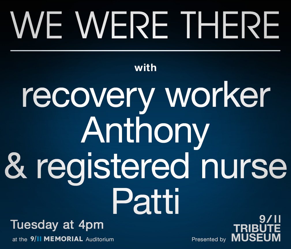 Hear recovery worker Anthony and registered nurse Patti share their stories for today's #WeWereThere at @Sept11Memorial Auditorium.pic.twitter.com/CU1v4ciu86