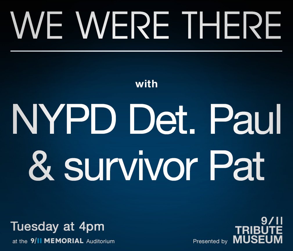 Join us as NYPD Detective Paul and survivor Pat share their stories for today's #WeWereThere at the @Sept11Memorial Auditorium.pic.twitter.com/TEIE2VFB2M