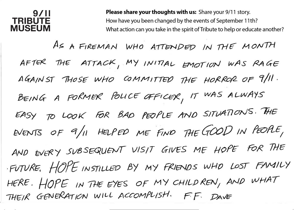 “The events of 9/11 helped me find the good in people and ever subsequent visit gives me hope for the future.” #VisitorCardpic.twitter.com/mygnLZITKK