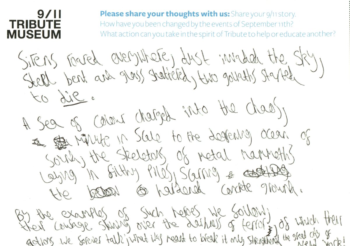 Every year, the @911TributeMuseum has hosted a variety of events celebrating #PoetryMonth and #PoemInYourPocketDay, and over the years, we've been inspired by the poems visitors have left us. Here's one left by a young visitor from the UK. #VisitorCard https://hubs.ly/H0bRlvm0 pic.twitter.com/JxuiZwcBkx