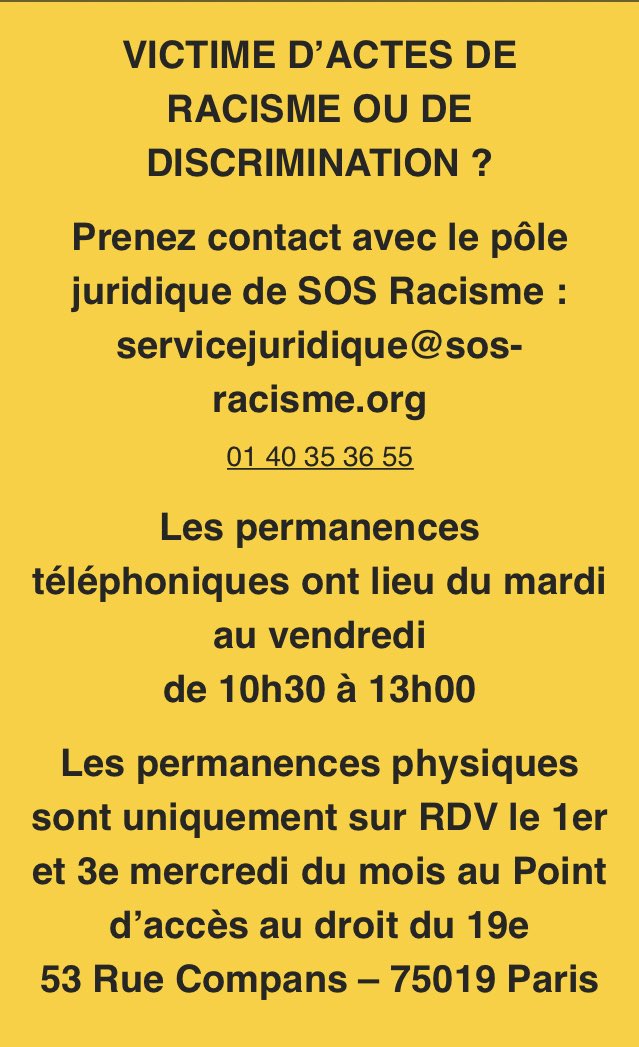 프랑스에서 인종차별 등 기타 차별 행위로 피해를 입었을 때, 아래 연락처로 신고할 수 있습니다. 길거리에서 걸리는 사소한 시비라도 바로 전화하는 척 이라도 해보세요. 그리고 무조건 증거 녹음 하시고요.pic.twitter.com/nZsuulpKjz