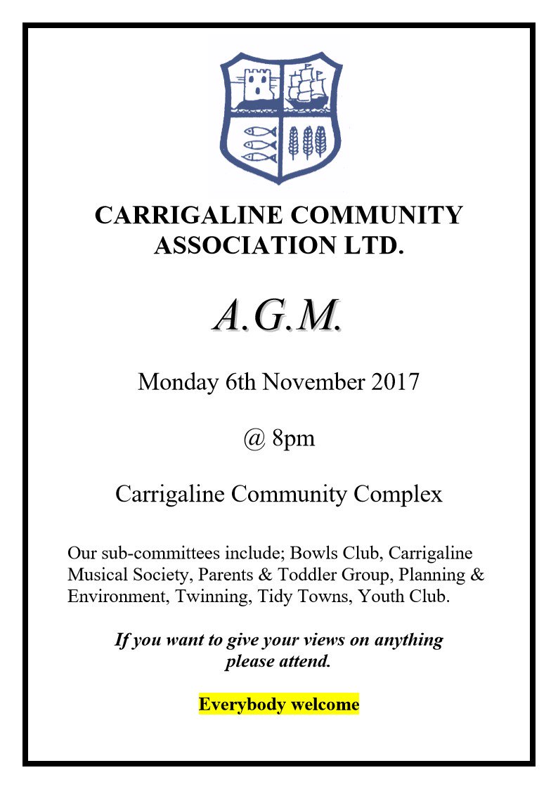 Carrigaline Community Association are having a public meeting tonight in the Complex at 8pm. All welcome.