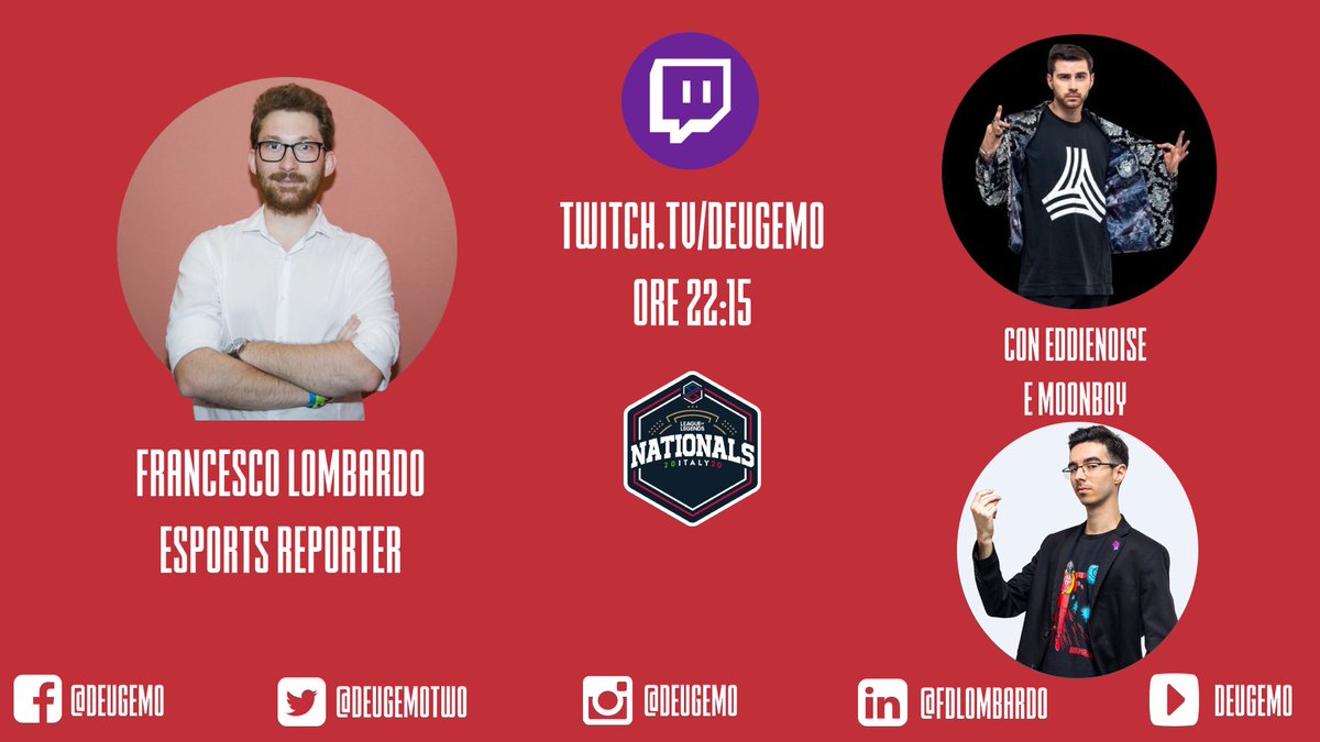 #streaming per la Super Week del#PGNATS: per la prima volta avrò due ospiti a cui fare domande di ogni tipo. E che fa, vi volete perdere i miei salti mortali su#Twitch con@MoonboyWasTaken e@EddieNoise ? 22:15: solito canale! http://twitch.tv/deugemo pic.twitter.com/Rx8YQqLayb