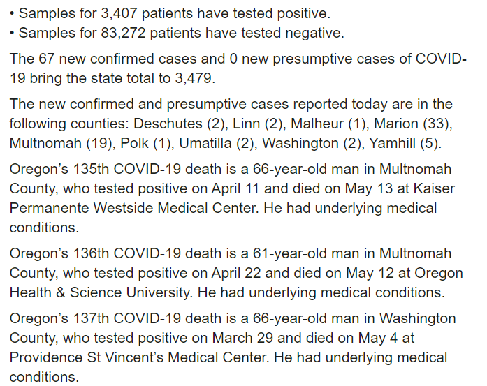 #COVID19 in#Oregon. Data are provisional and change frequently. For more information, visit http://healthoregon.org/coronavirus pic.twitter.com/zaFjf4uk5h