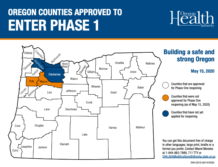 @OregonGovBrown announced the 28 counties that can begin entering Phase I of reopening on May 15 under her framework for building a safe and strong#Oregon. You can view the reopening status of your county, as well as sector-specific guidance at http://coronavirus.oregon.gov .pic.twitter.com/P9aiCp66ei