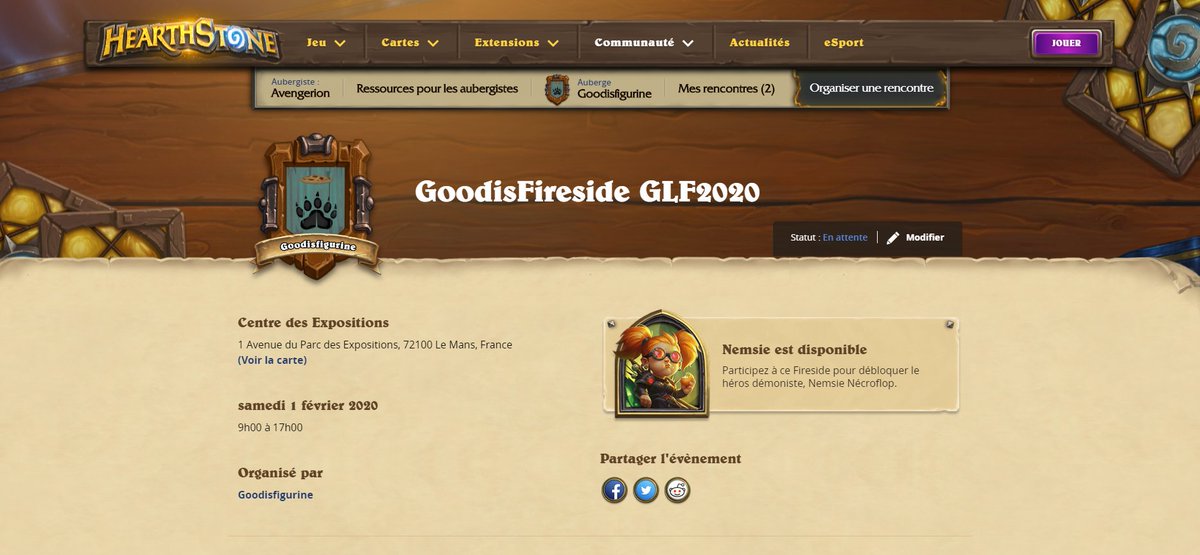 #FiresideGathering@hearthstone_fr à l'occasion du@GeekLifeLeMans le 01 et 02/02. Venez nous rejoindre et nous rencontrer sur le nouveau mode de jeu, le champ de bataille et découvrir la nouvelle aventure Galakrond.