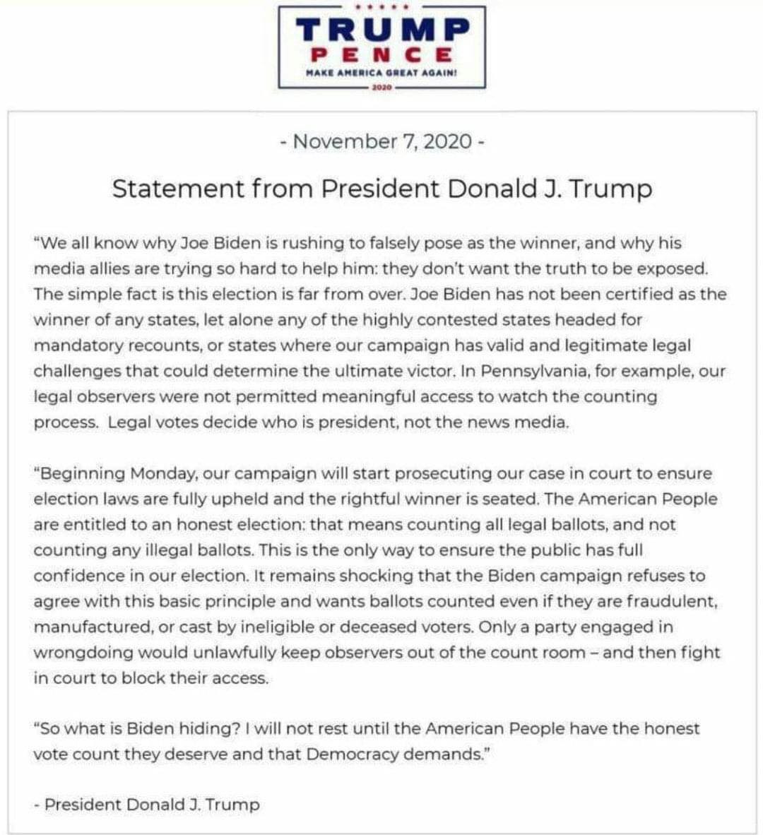 Hmmm... when a candidate refuses to concede what’s the difference between the media lauding them for showing due diligence and/or smearing them as a sore loser?https://twitter.com/MarcusHUSA/status/1326503306223554565 …