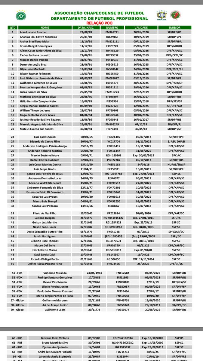 Três da Globo, quatro da RBS... É o que indica a lista oficial de passageiros.