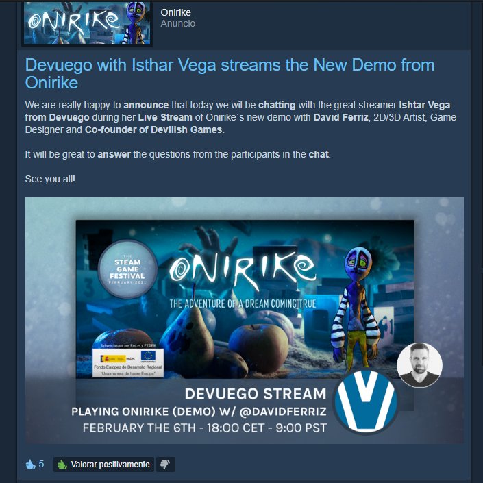 #SteamGameFestival. ¡No olvides dejarnos tu feedback sobre la demo de#Onirike! :-)https://twitter.com/devilishgames/status/1358782238083723265 …