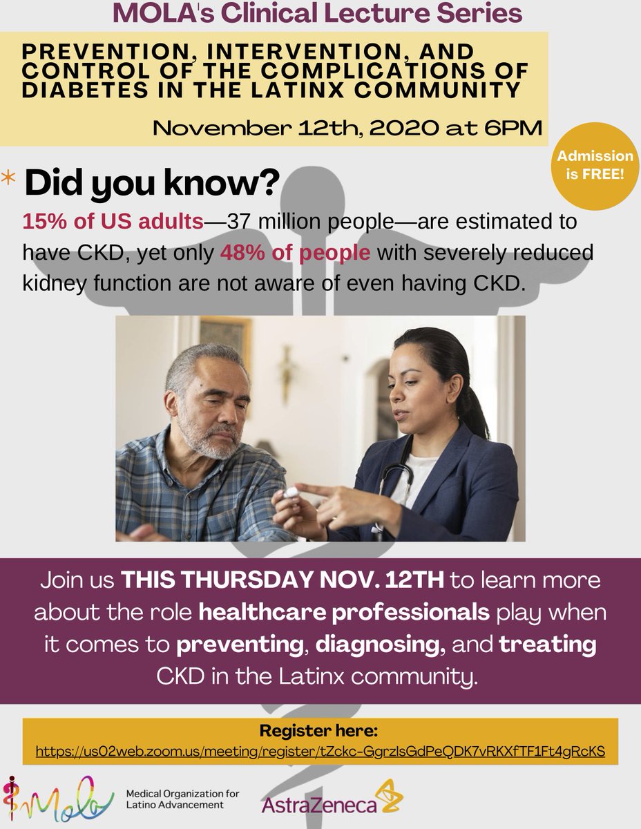 #DiabetesAwarenessMonth Join us THURSDAY, NOV. 12TH @ 6P (CDT) to learn more about the role healthcare professionals play when it comes to preventing, diagnosing, and treating CKD and diabetes in the Latinx community. See you there!