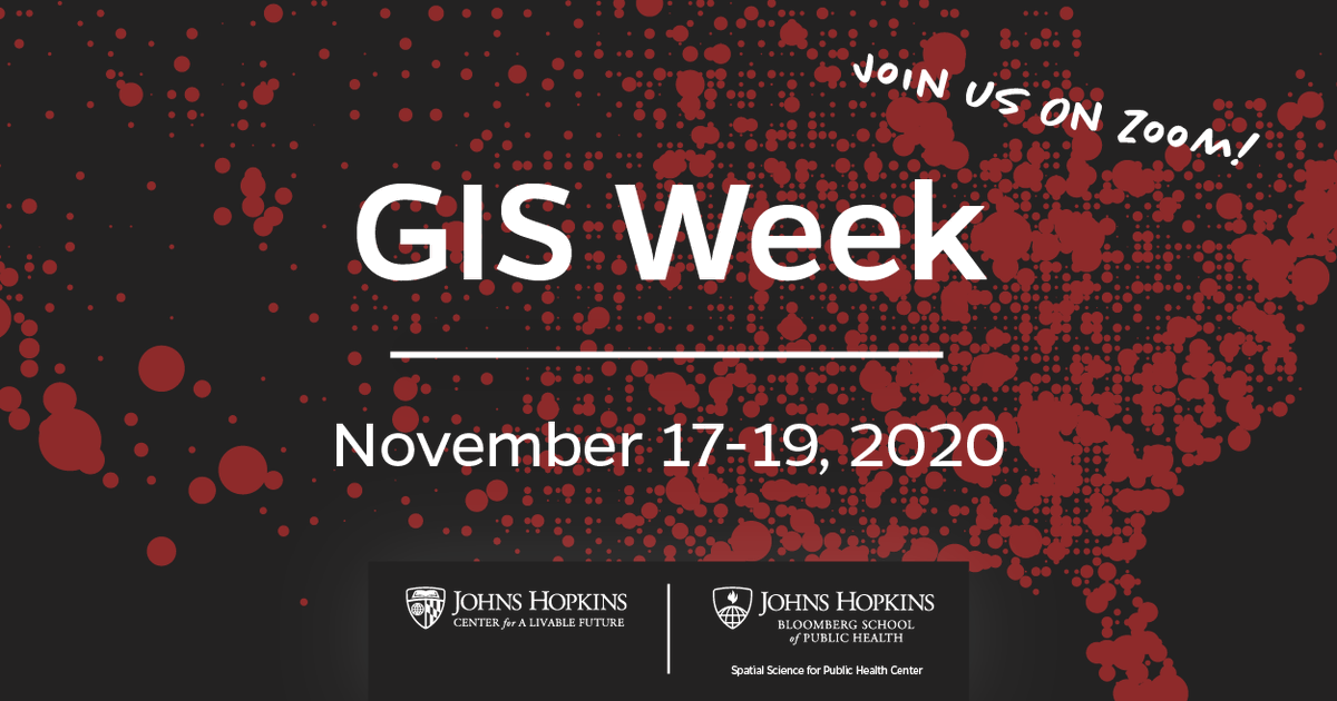#GISWeek2020 at@JohnsHopkinsSPH! Kicking off a great lineup of online events with 2 panels today! @ 12 we'll learn about the@FoodDashboard & @ 3 we'll explore#GIS /#SpatialAnalysis applications in#EnvironmentalHealth. https://clf.jhsph.edu/about-us/events/gis-week-2020 …pic.twitter.com/wXBWA8ED5T