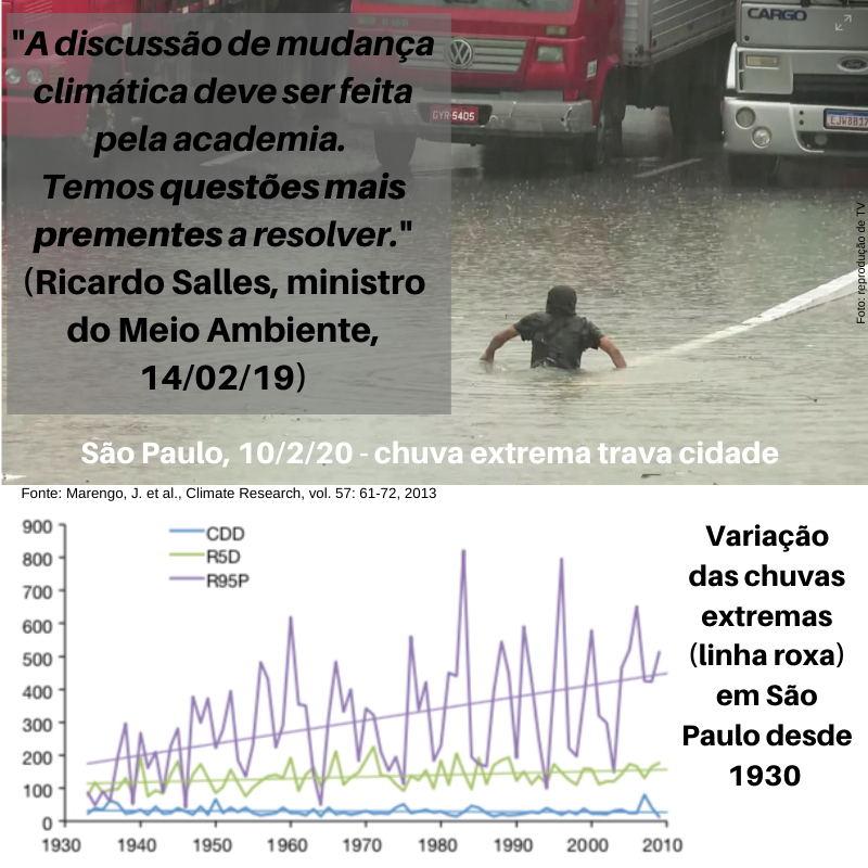 @mmeioambiente dizia que mudança climática era um tema "acadêmico", "para daqui a 500 anos". Hoje São Paulo parou por mais uma chuva extrema. Chuvas extremas mataram e destruíram neste verão em MG e no ES.pic.twitter.com/jYrWC3lUhh