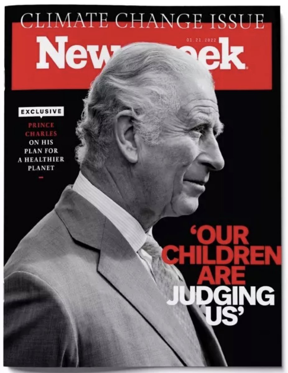 Newsweek has just published a new special edition focused on climate change. It features an article written by Prince Charles where he "offers his plan to combat climate change” “...we need the mobilising urgency of a war-like footing if we are to win” https://www.newsweek.com/2022/01/21/exclusive-prince-charles-says-our-children-are-judging-us-climate-change-1661370.html …pic.twitter.com/0ZfjZEjZ2R
