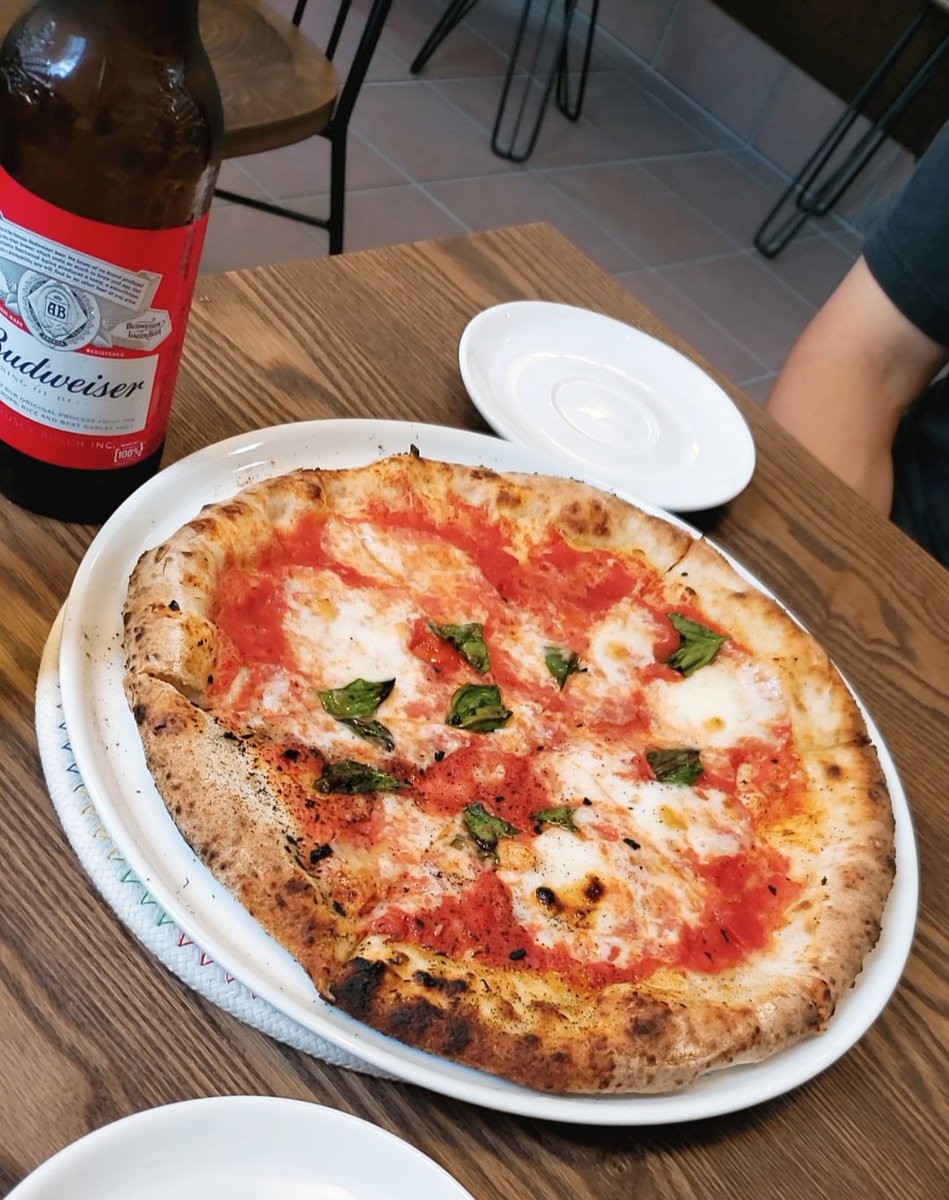 生地が焦げて少し煤が付いているところが窯焼きピザらしくて良い