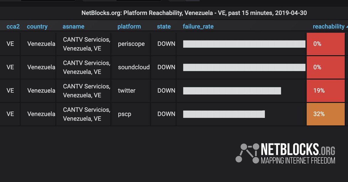 Clear indication something IS happening in Venezuela today.https://twitter.com/netblocks/status/1123178873401876480 …