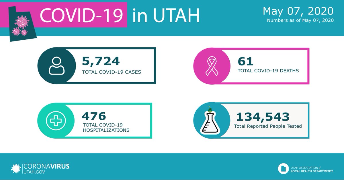 Utah COVID-19 Numbers Update: For more details visit https://coronavirus.utah.gov/case-counts/ pic.twitter.com/nPz1f5jpPN