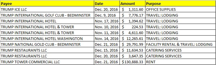 Trump's campaign paid his companies another $204k after his Election Day victory, according to an