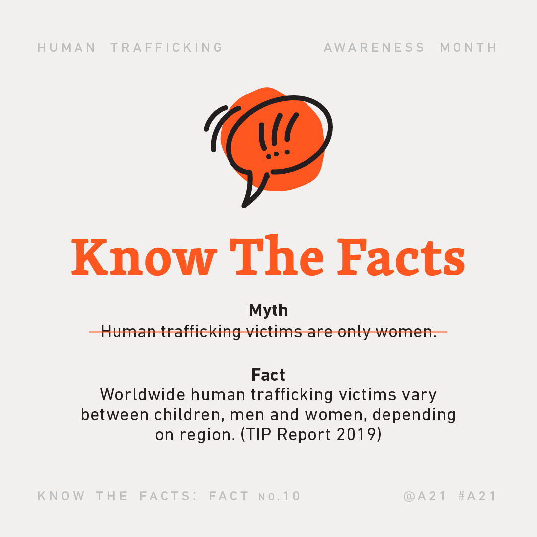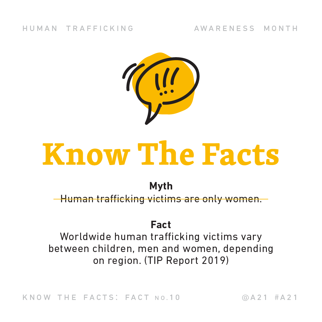 Fact: Human trafficking looks different all over the world. But it's the same abuse. Men, women, and children are being exploited for their bodies and for their labor. As we focus this month on raising awareness, it's important to know the facts.