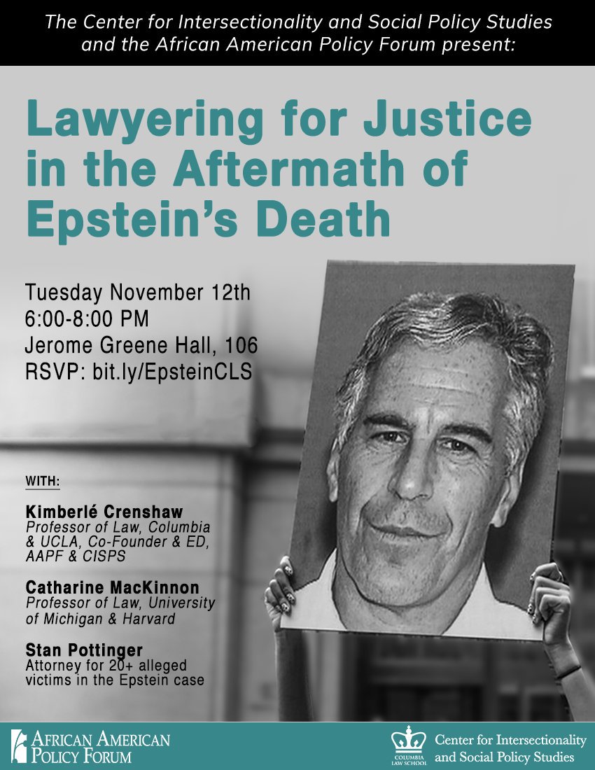 TONIGHT at 6pm! Join us for our free event at 6pm in @ColumbiaLaw, Lawyering for Justice in the Aftermath of Jeffrey Epstein's Death. RSVP: http://bit.ly/EpsteinCLS pic.twitter.com/jIY6E8rkgj