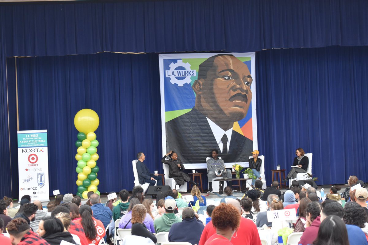 Happy #MLKDay! This morning, @sandylocks teamed up with @LoganLaurice @NBA_Ironman @MaerRoshan #ValZavala @LAWorksNow and @LAmag to discuss what the Reverend's message means to those of us still in the stride toward freedom.pic.twitter.com/dKq5CsZZPw