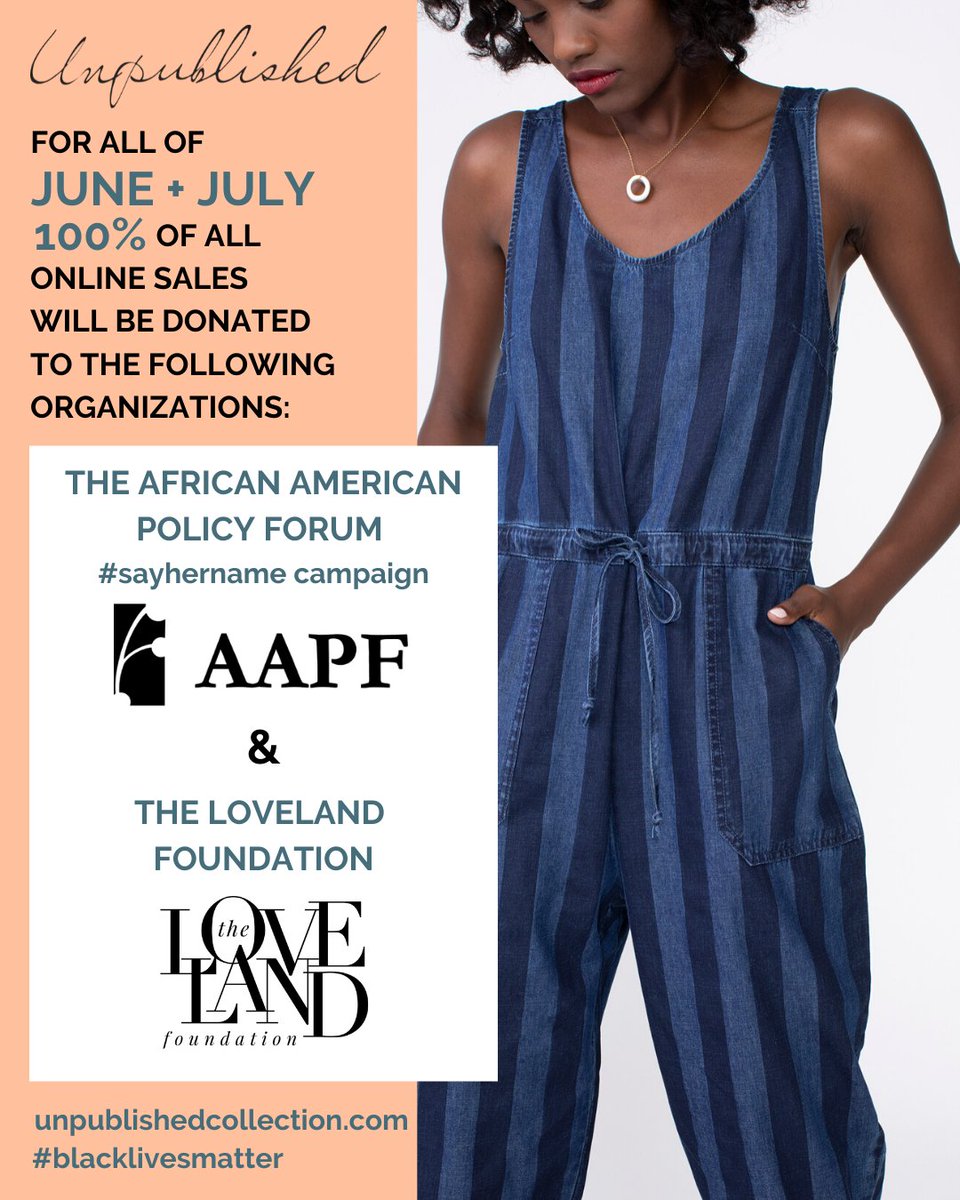 This month and next, 100% of online sales from Unpublished will go toward supporting the work of AAPF and The Loveland Foundation. Be sure to check out Unpublished: https://unpublishedcollection.com/ pic.twitter.com/K83L37klPO