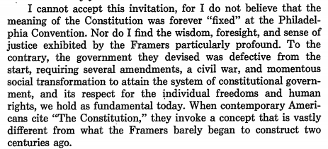 I am reminded of the words of Justice Thurgood Marshall on the bicentennial of the Constitution. "Nor do I find the wisdom, foresight, and sense of justice exhibited by the Framers particularly profound. To the contrary, the government they devised was defective from the start."pic.twitter.com/IkMRjAFXBU