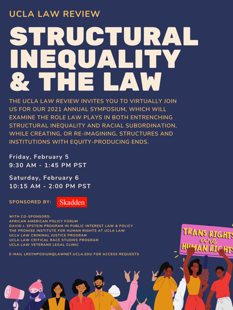 This week: Virtually join the UCLA Law Review for their annual symposium, titled, Structural Inequality & the Law. Friday, February 5th and Saturday, February 6th, co-sponsored by @AAPolicyForum. RSVP here: https://docs.google.com/forms/d/e/1FAIpQLSe3hB7Lx5EQMhDTywAvUux5uOTpt5t7tNgHc9535HAryVa9Bg/viewform?gxids=7628 …pic.twitter.com/UFAdJMZbzI