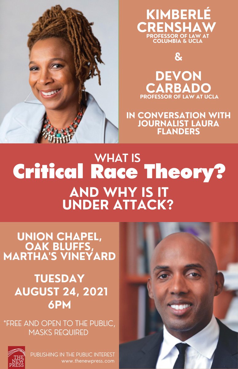 11. “What is Critical Race Theory and Why Is It Under Attack?” Join Kimberlé Crenshaw and Devon Carbado in conversation with Laura Flanders tonight at 6 ET. At Union Chapel in Martha’s Vineyard and live-streamed on our Youtube page: