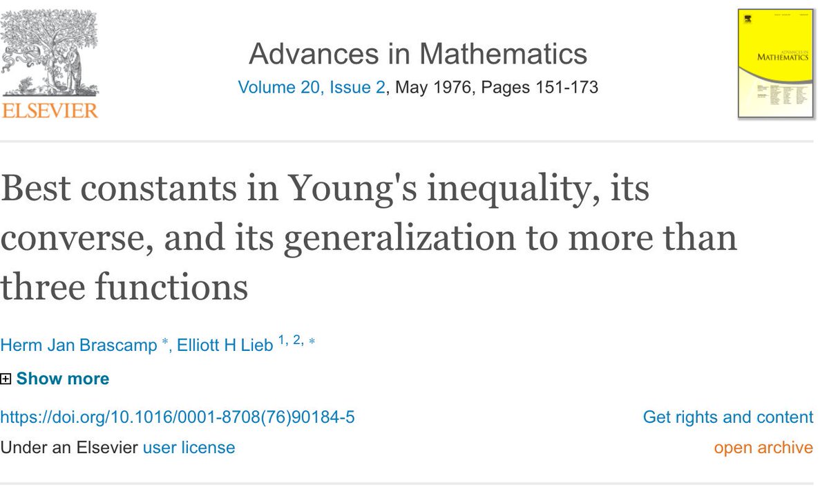 In harmonic analysis, it is well known that the Gaussian pulse achieves the optimal localization in time and frequency domains (Uncertainty principle). It's somewhat lesser known that Gaussians also achieve the sharpest possible constants in Young's convolution inequality.pic.twitter.com/tS0Nzc3JHu