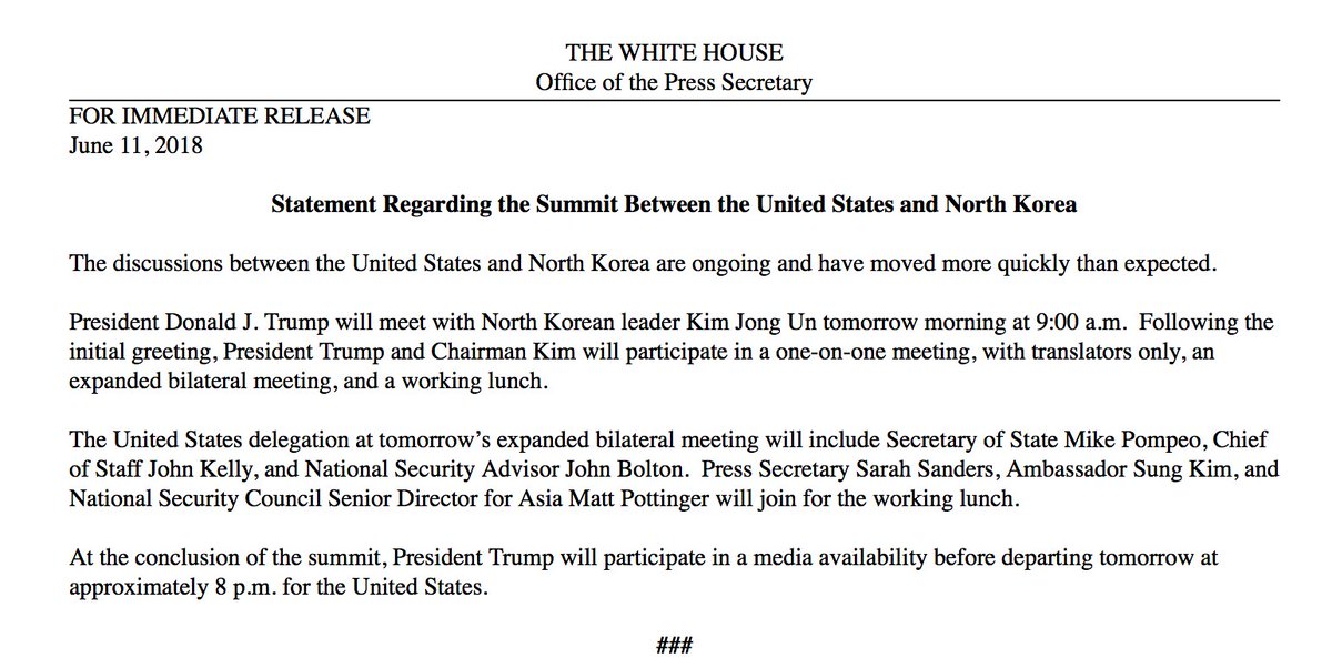 This cannot be good. God only knows what trump will promise NK. There needs to an adult in the room.